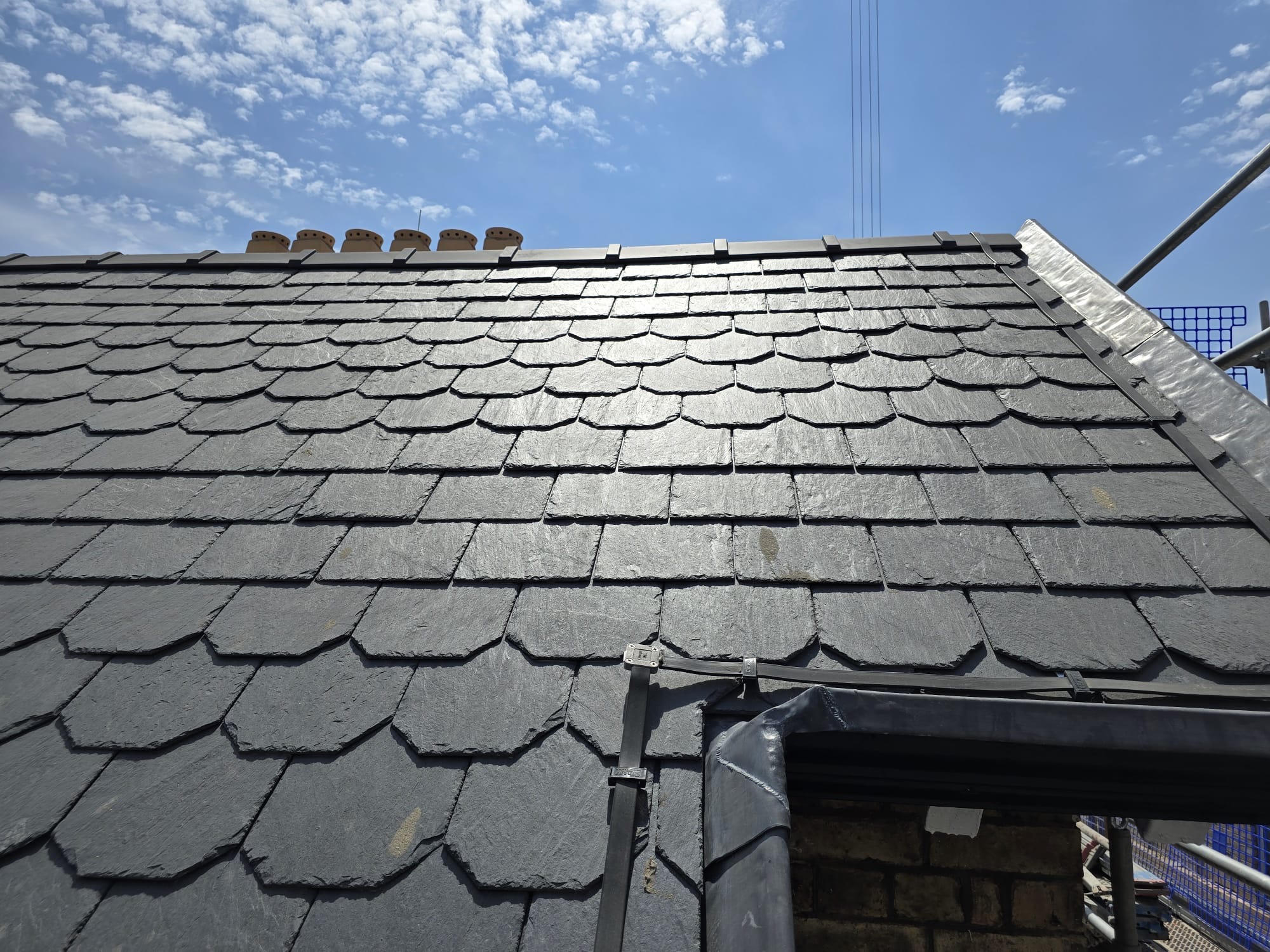 On site, the first task for the ALB Roofing team was to carry out a full roof mapping of the existing structure. They recorded each course and carefully noted the frequency and position of the original scalloped details. This formed the basis of the new layout, enabling them to replicate the original pattern, proportions, and visual appearance with accuracy.
